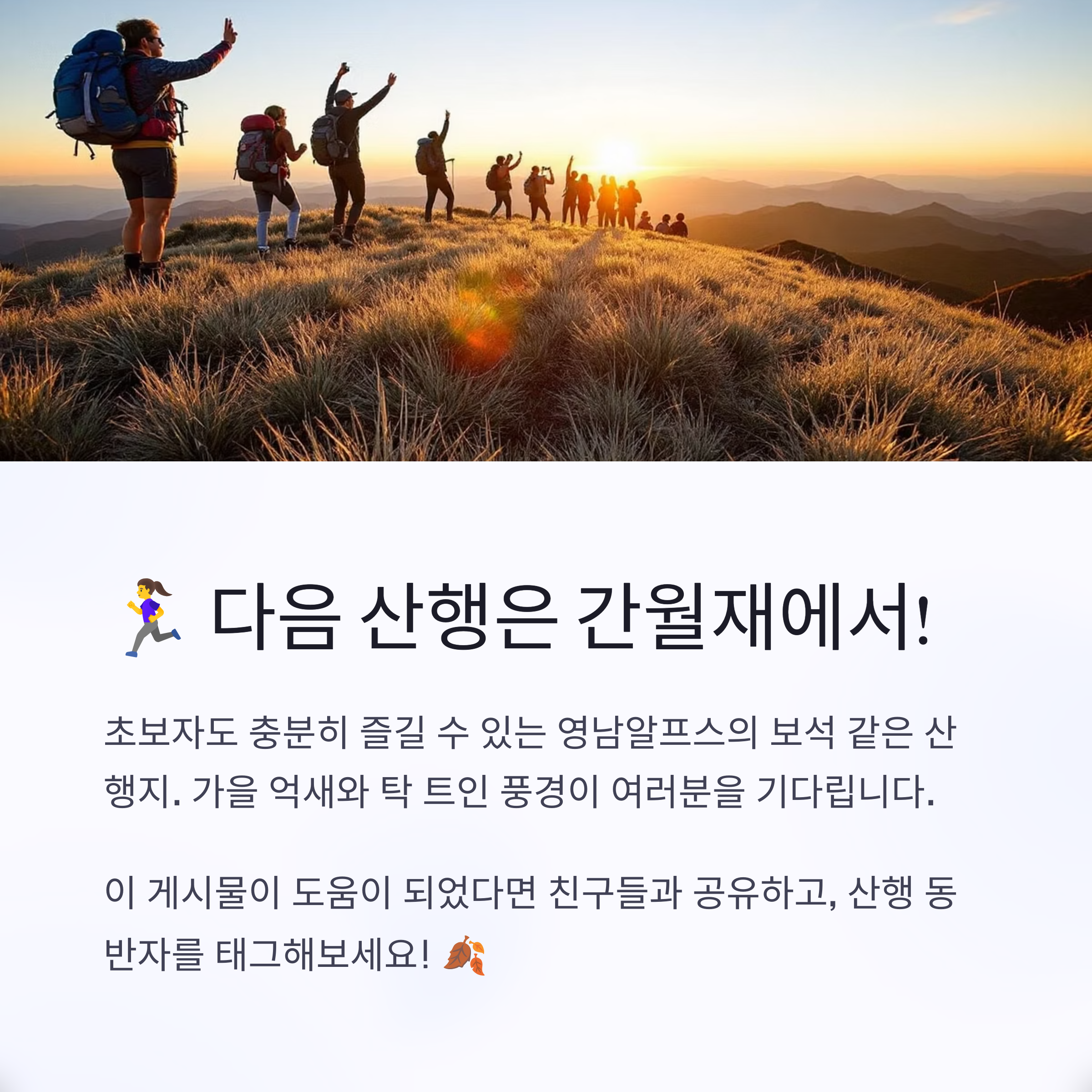 | 가을철 장관을 이루는 간월재 억새 명소 | 누구나 도전 가능한 완만한 등산길 | 자연과 함께 걷기 좋은 영남알프스 코스 |