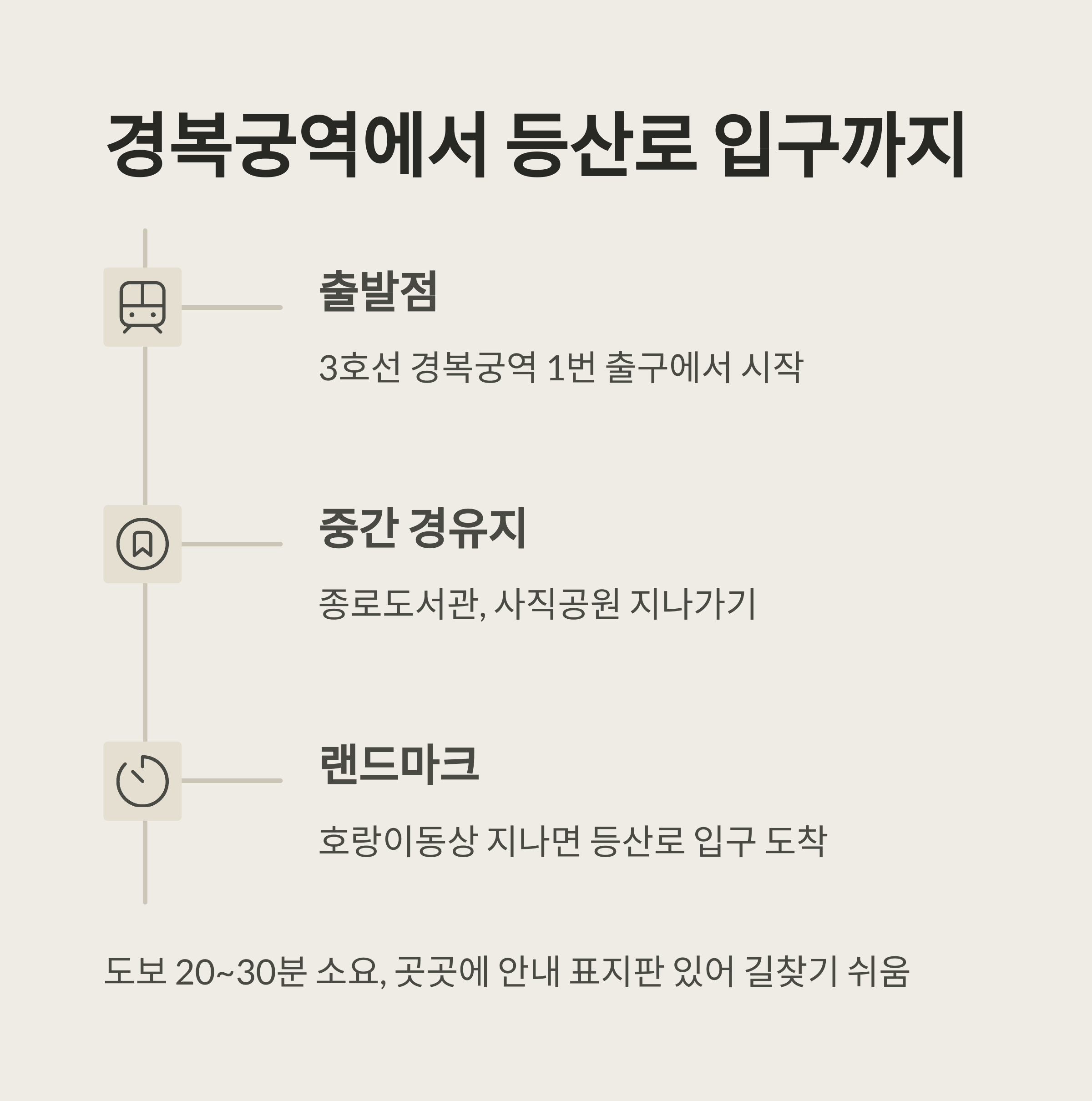 출구에서 바로 사직공원 방면으로 도보 이동하면, 인왕산 등산로로 자연스럽게 연결돼요