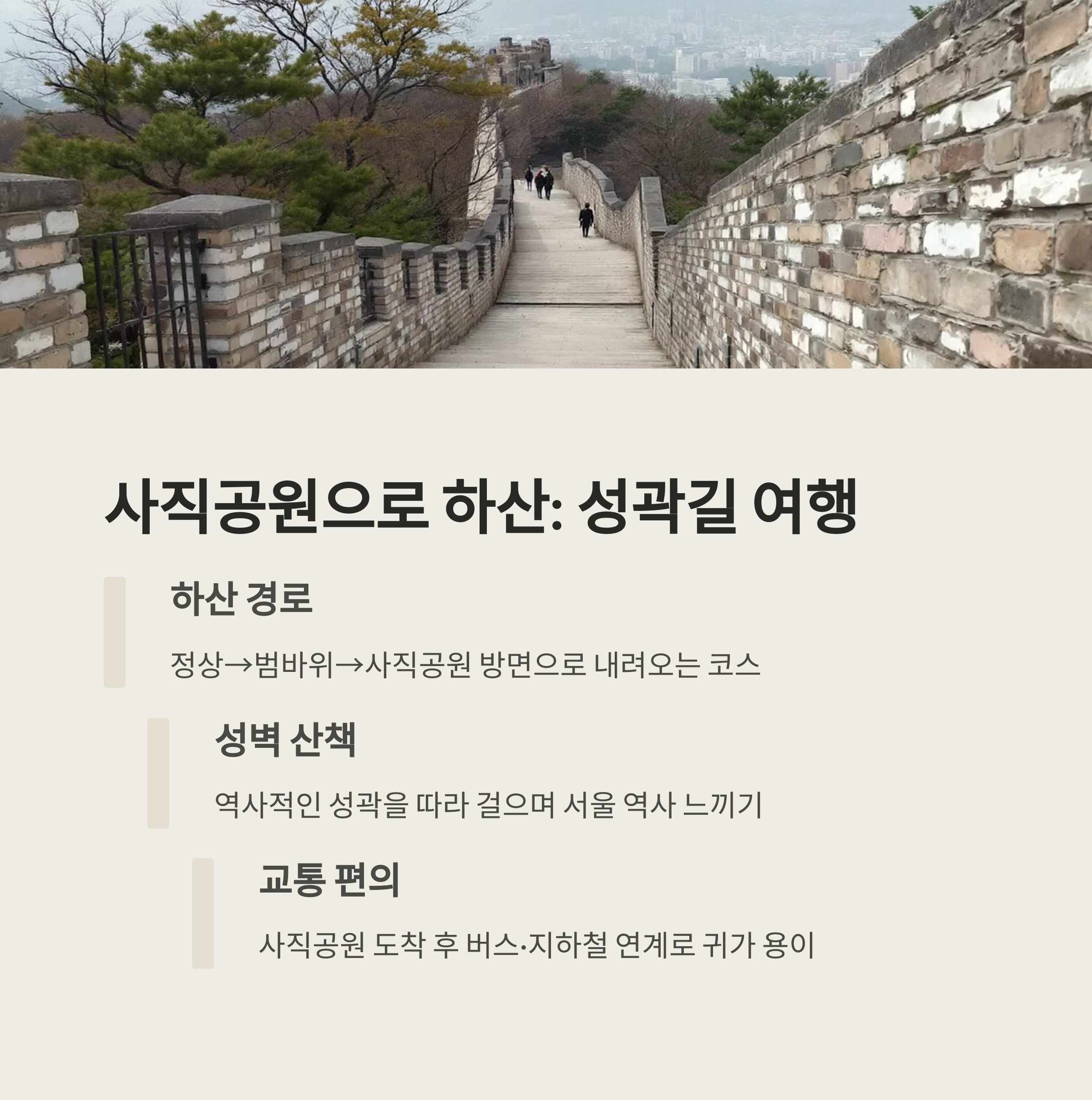 "마지막까지 서울의 역사를 느끼는 하산길"이 기다리고 있습니다