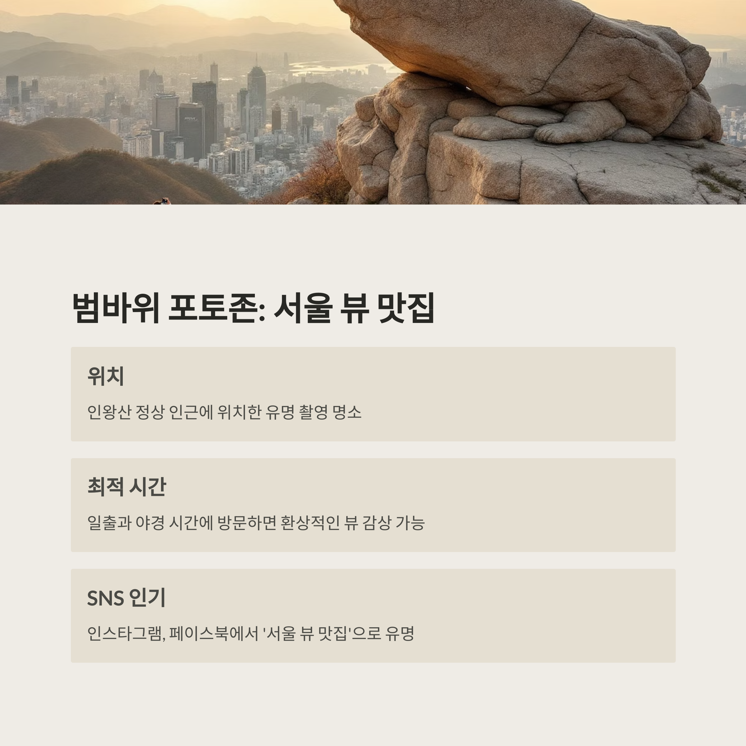 범바위 포토존 - 일출과 야경의 환상적인 만남