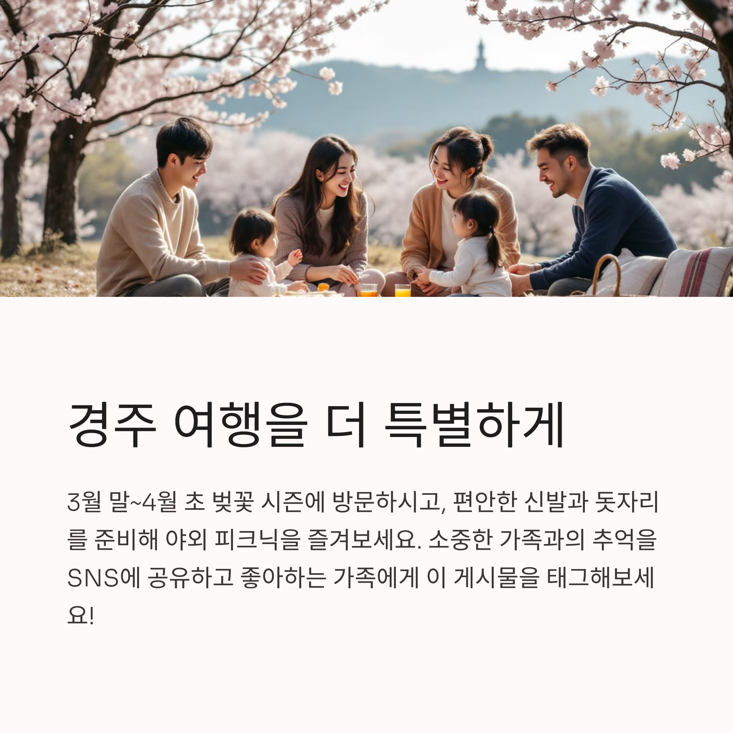 경주 가족여행 계획 중이신가요? 방문해보신 키즈 펜션이나 벚꽃 명소에 대한 경험이 있다면 댓글로 자유롭게 공유해주세요. 여러분의 이야기가 다른 가족에게 큰 도움이 될 수 있어요!
