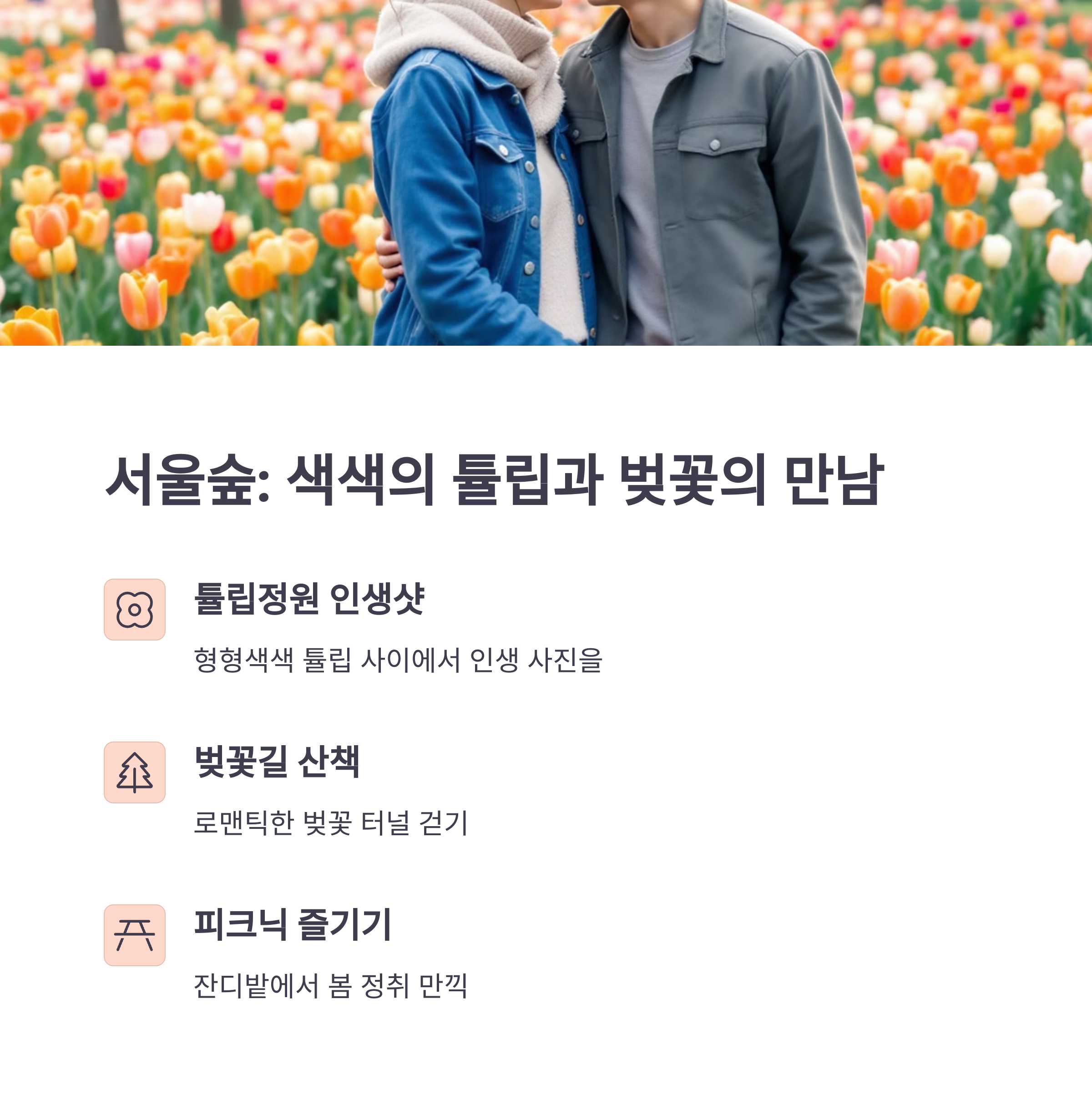 | 봄꽃 데이트 | 튤립 명소 | 벚꽃 코스 |