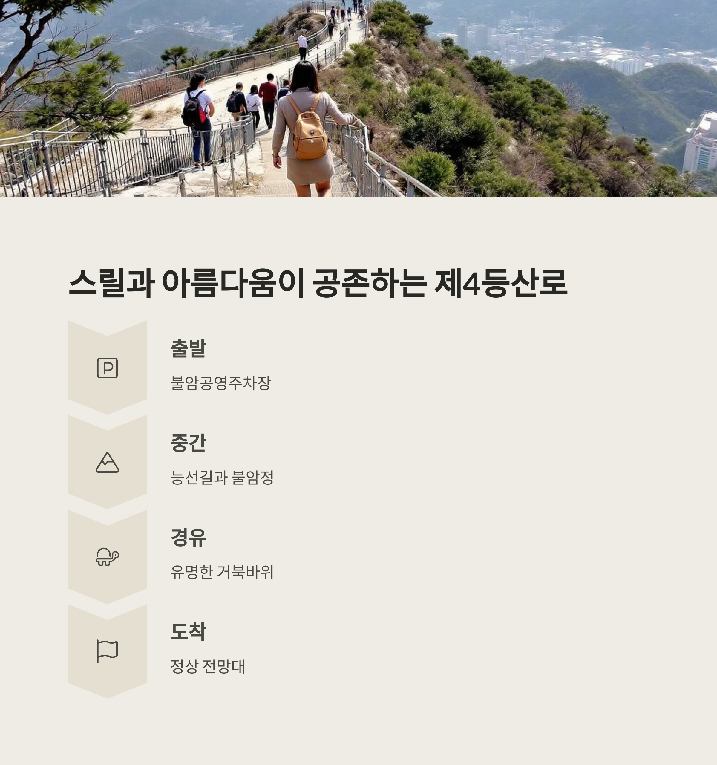 "걷다 보면 어느새 정상에 도착하는 느낌"을 받을 수 있습니다.