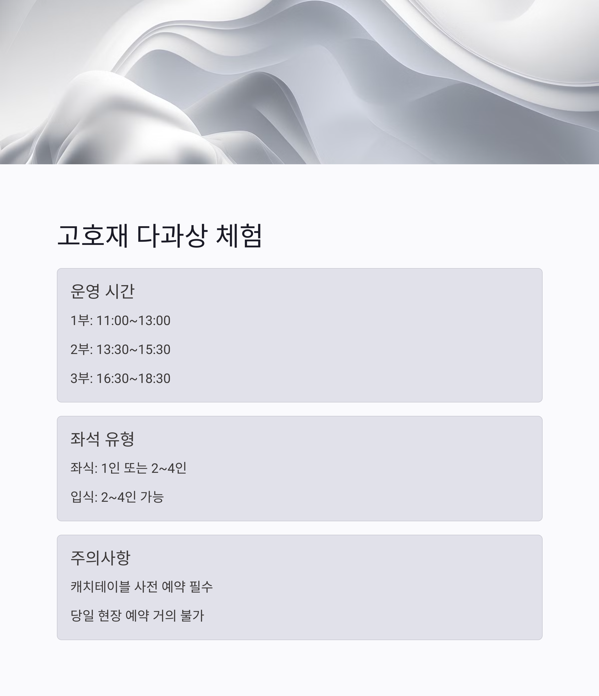 - ✅ 음식 알레르기, 좌식 불편 시 사전 요청 가능