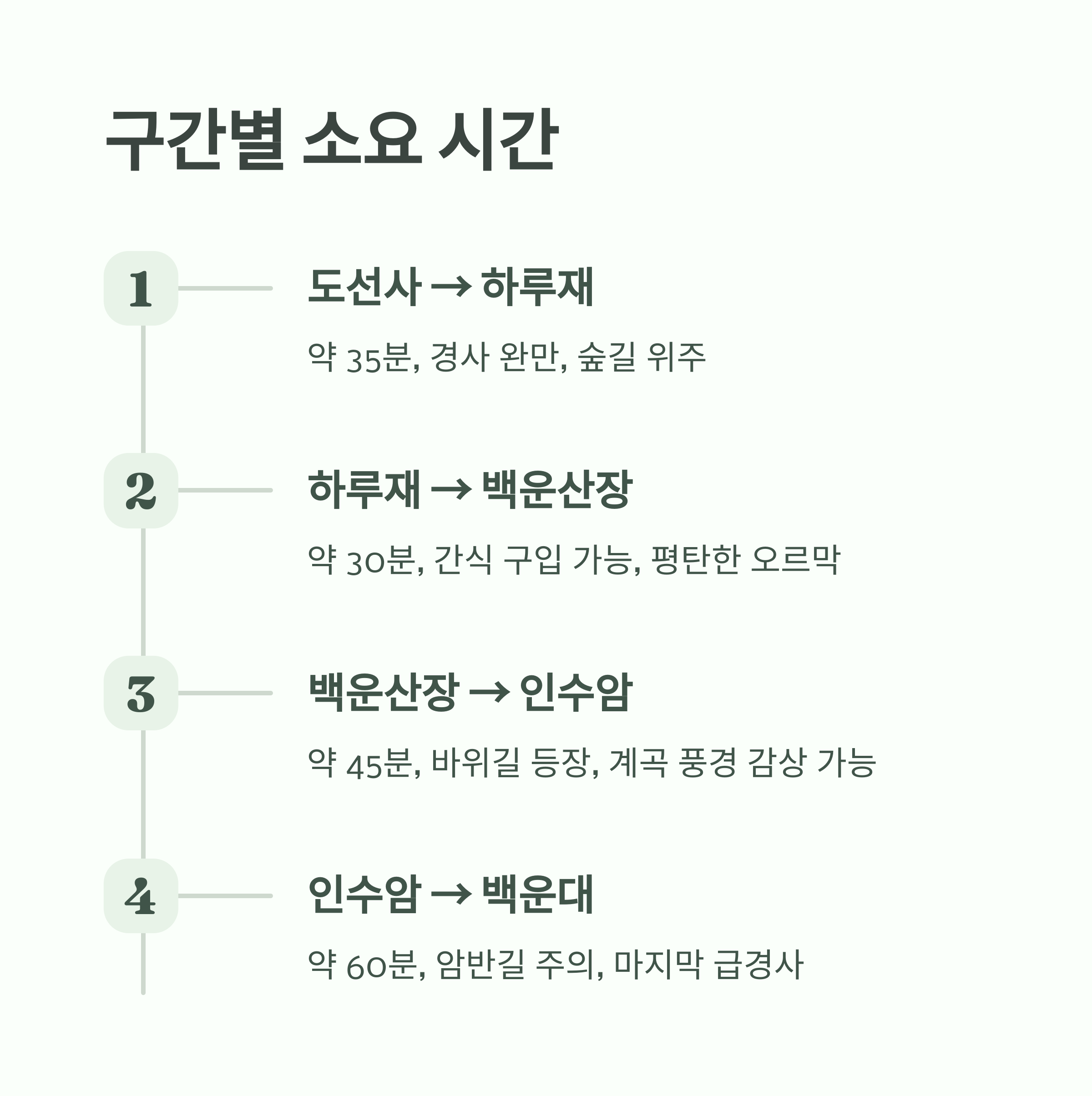 핵심: 백운산장에서 인수암 구간이 체력적으로 가장 부담스러울 수 있으므로