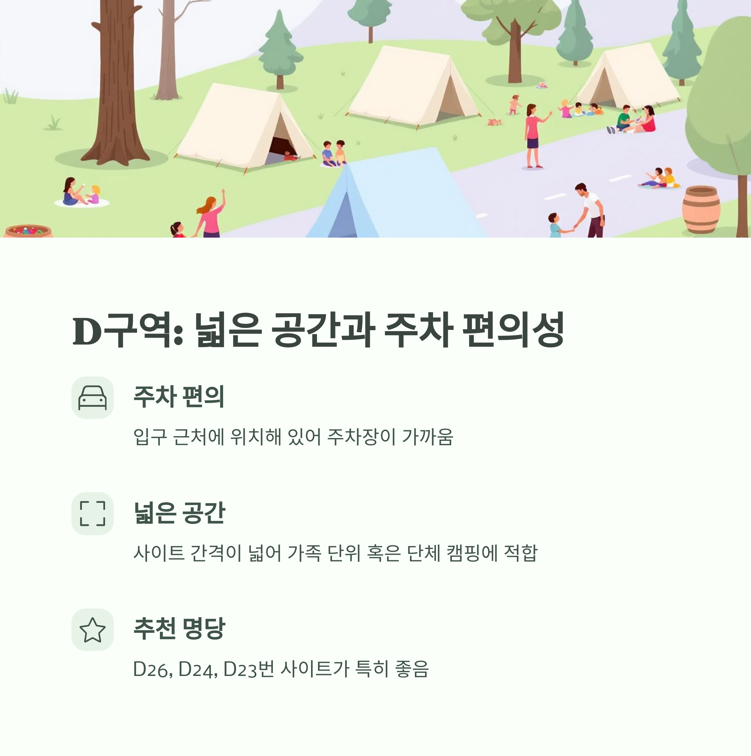 일반캠핑존 D구역 – 주차 편의와 넓은 공간 확보