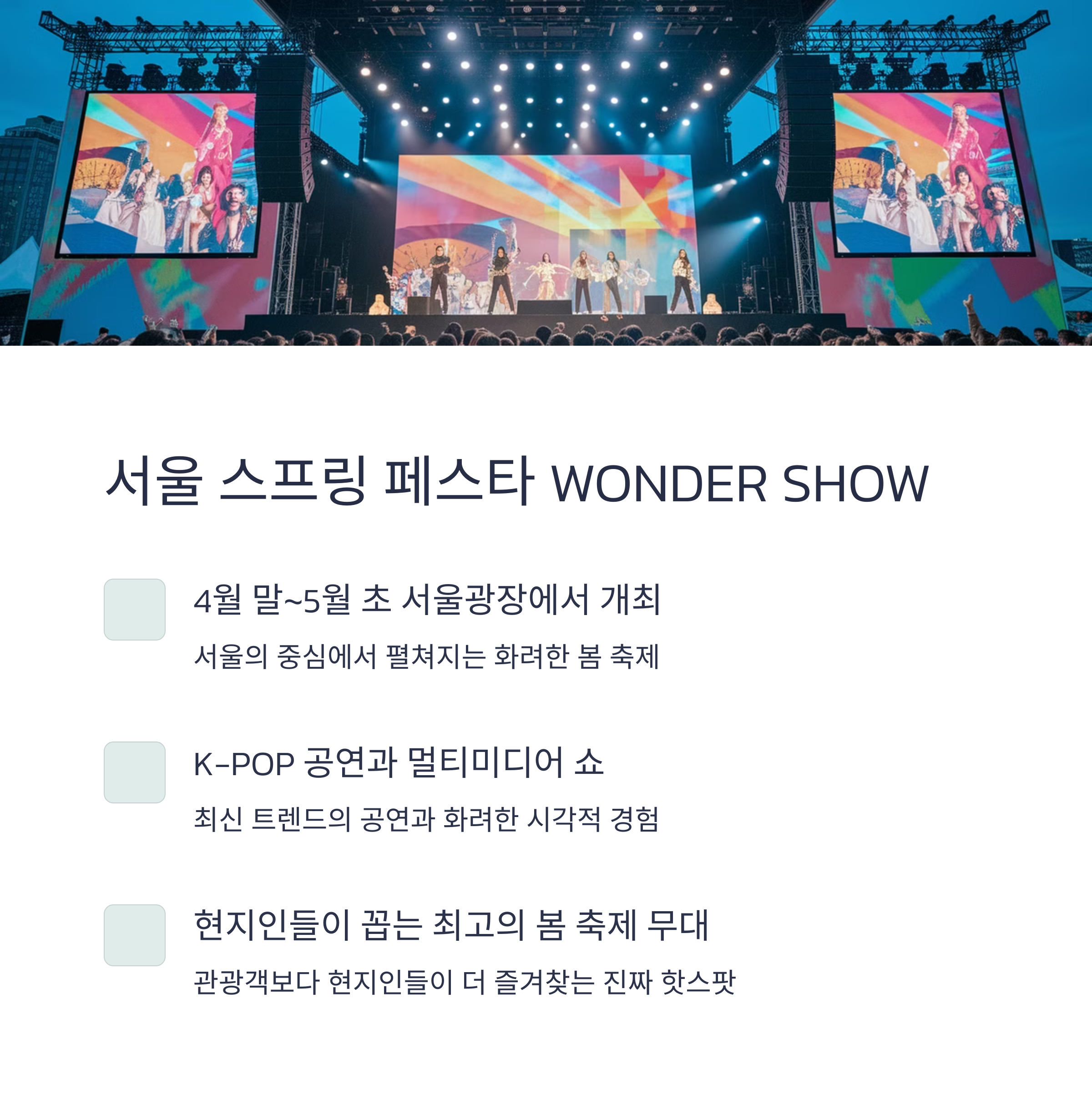 | 서울 스프링 페스타 | K-POP과 멀티미디어가 어우러진 대형 봄 축제 |