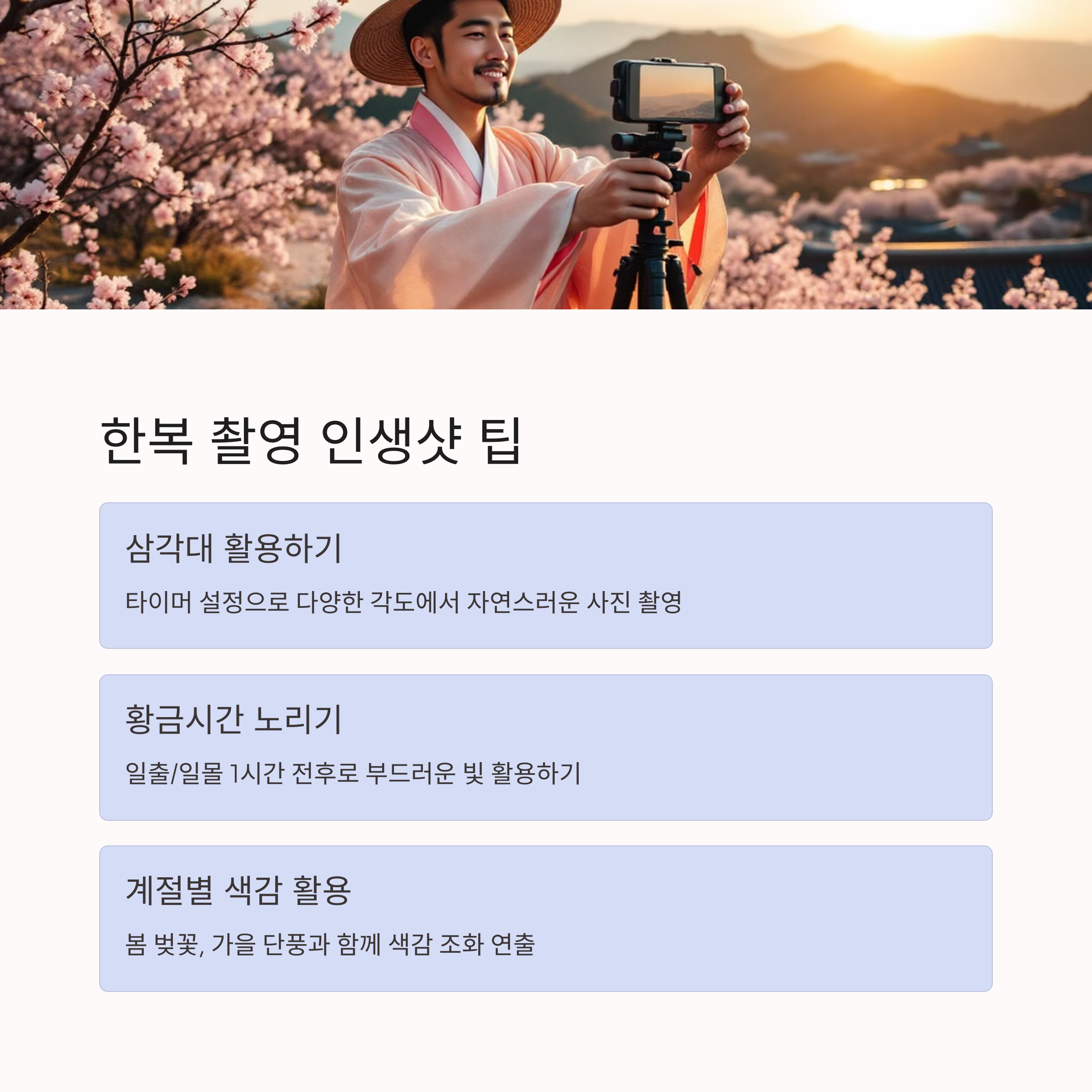 | 한복 대여 팁 | 네이버 예약 시 할인 혜택 및 원하는 시간대 확보 가능 |