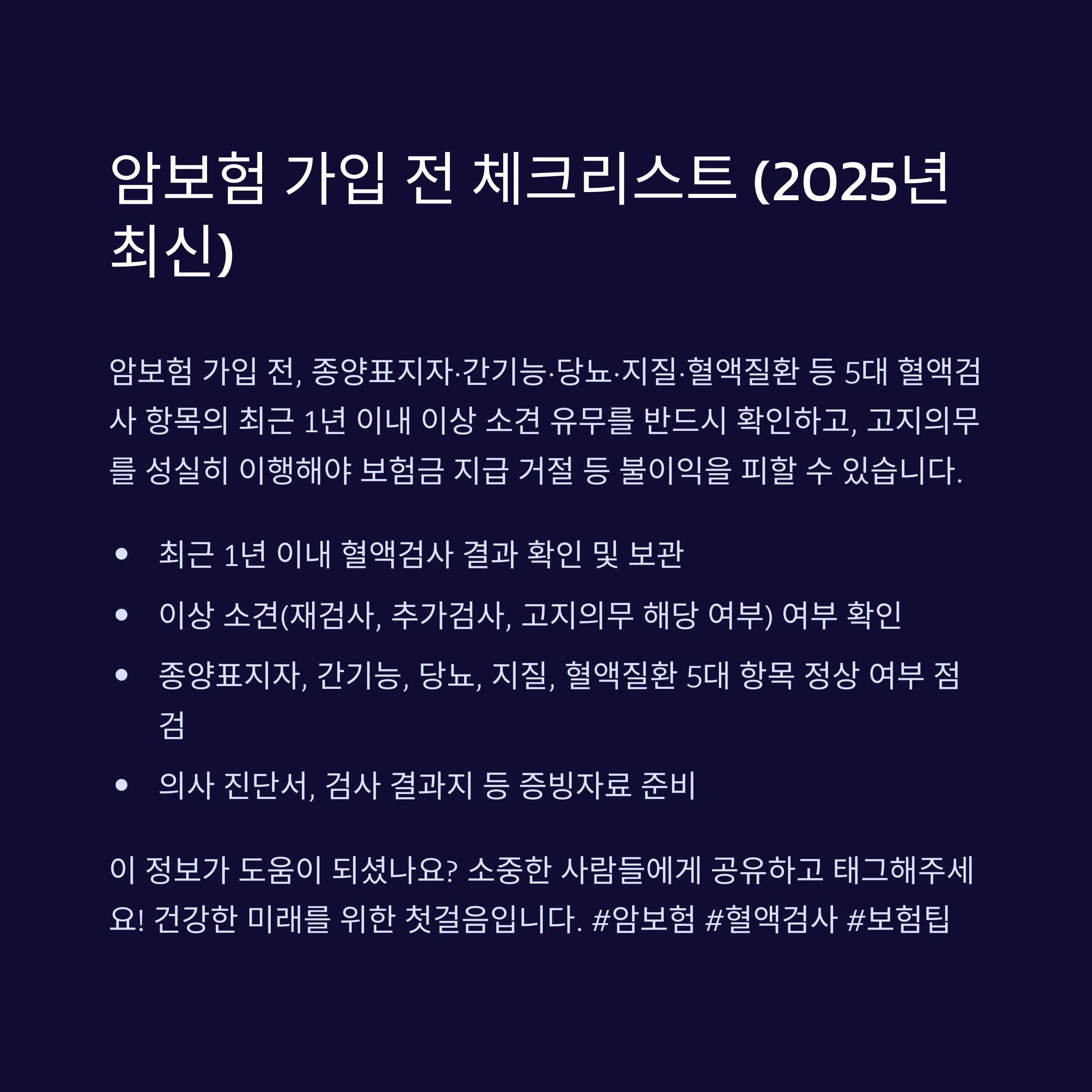암보험 가입 전 반드시 확인해야 할 5가지 혈액검사 항목 [2025년 최신 기준]