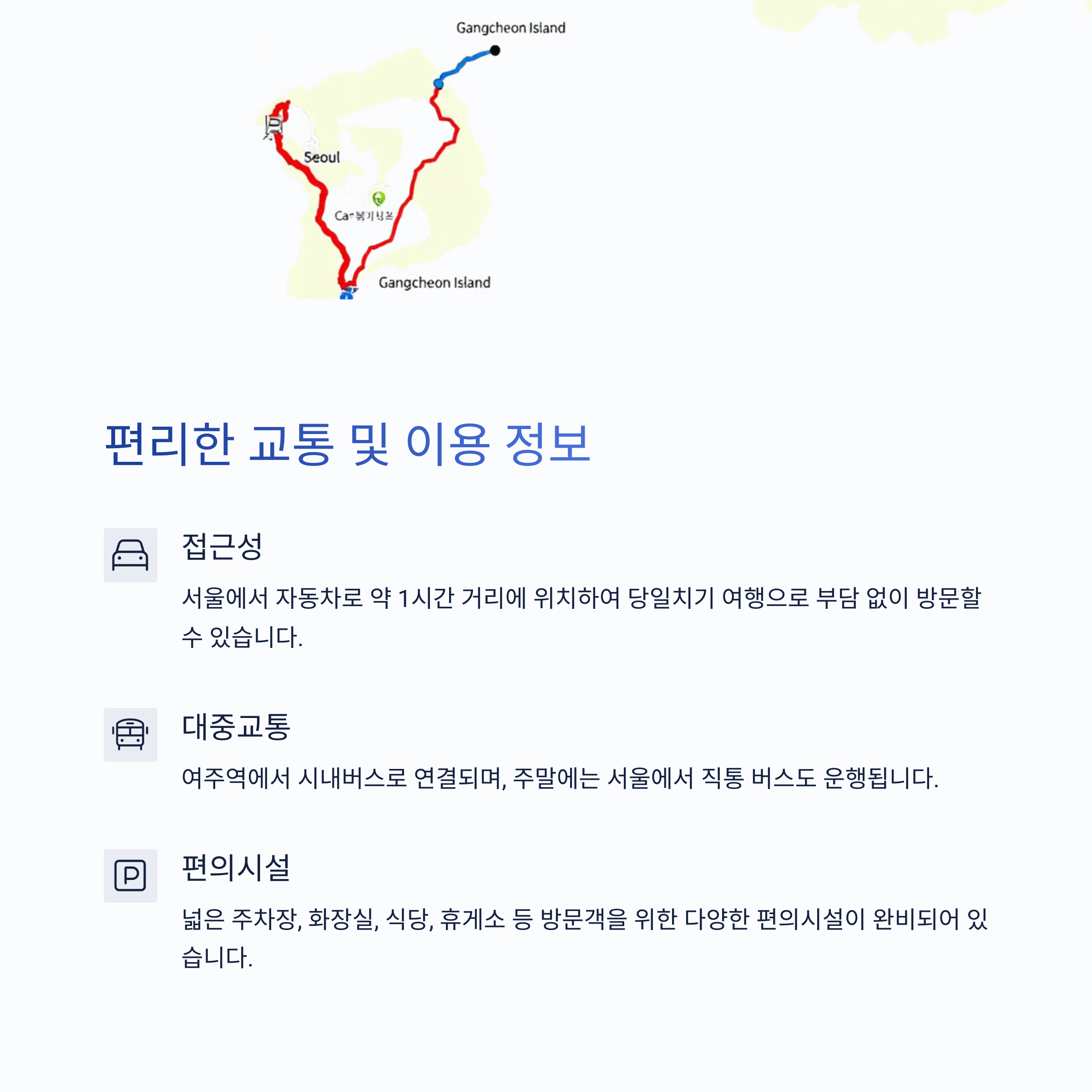| 강천섬 위치 | 방문 시기 | 주요 시설 |