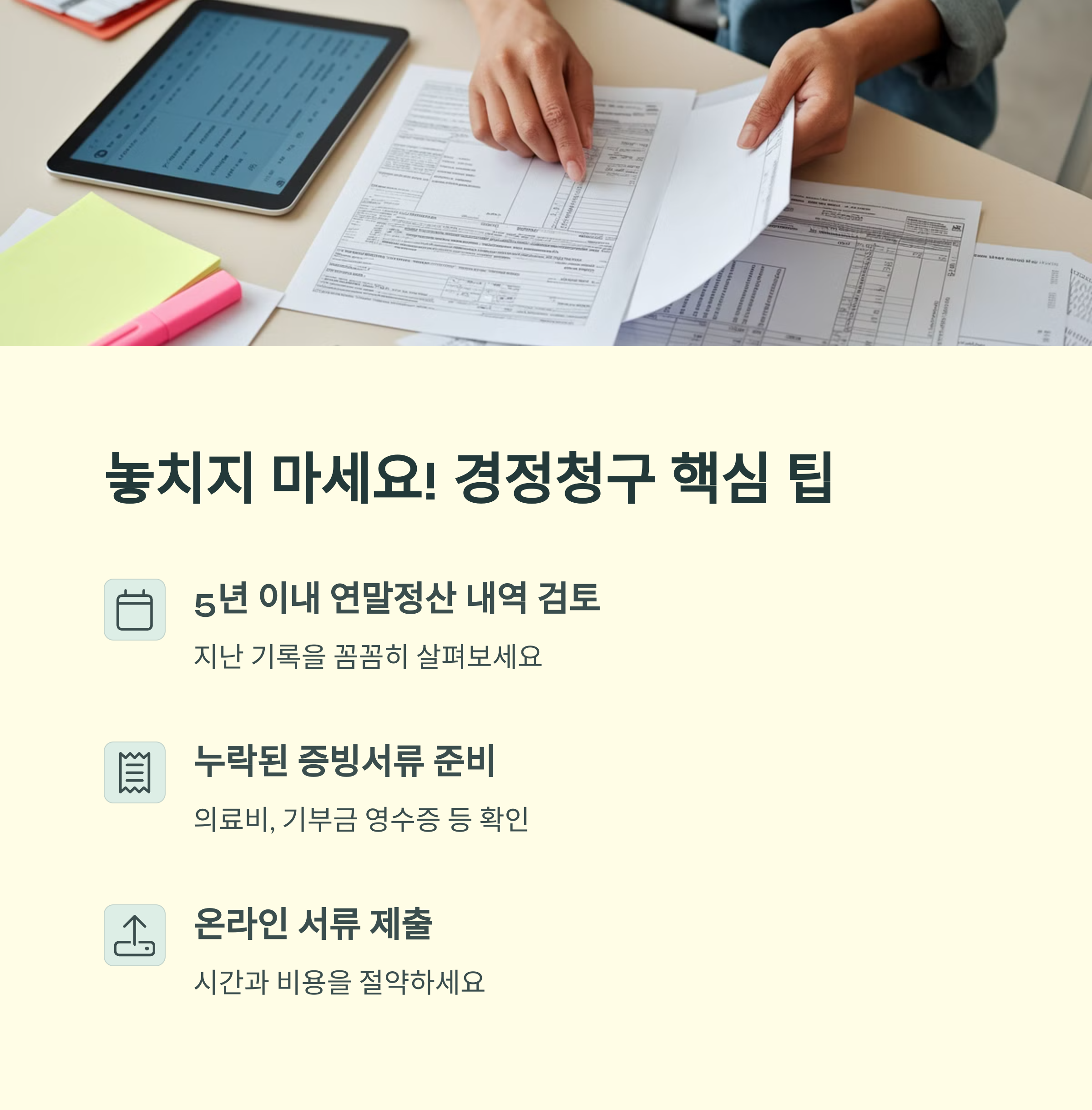 | 경정청구란? | 연말정산 후 수정 요청으로 환급받는 제도 |