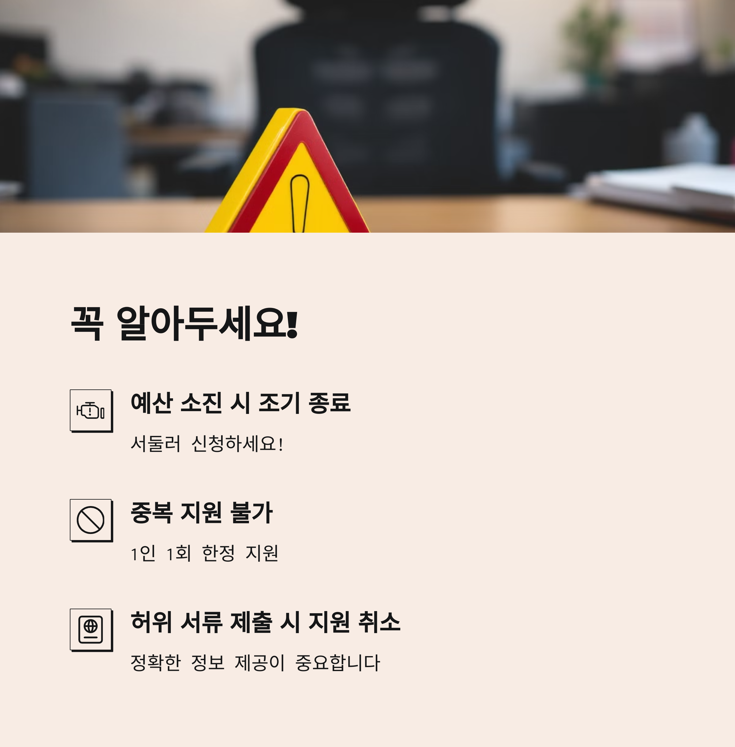- 허위 서류 제출 시 지원이 취소되며 추후 제재가 있을 수 있습니다.