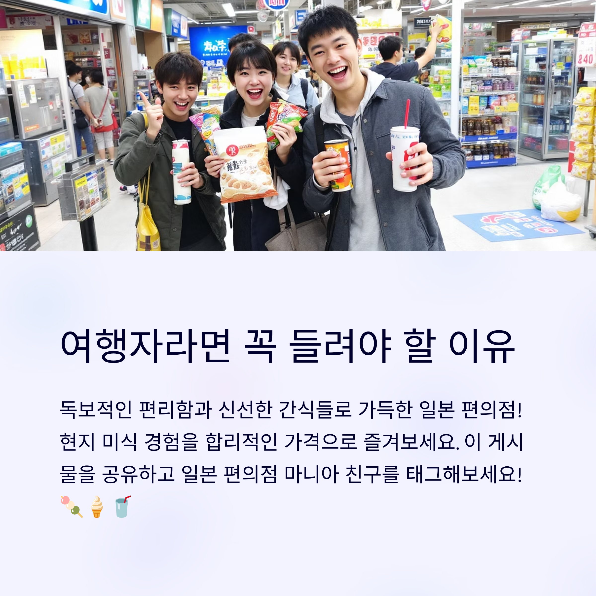 일본 편의점에서 가장 기억에 남는 음식은 무엇인가요? 추천하고 싶은 제품이나 실패했던 간식이 있다면 댓글로 공유해주세요! 여러분의 경험이 더 풍성한 여행 팁이 됩니다.