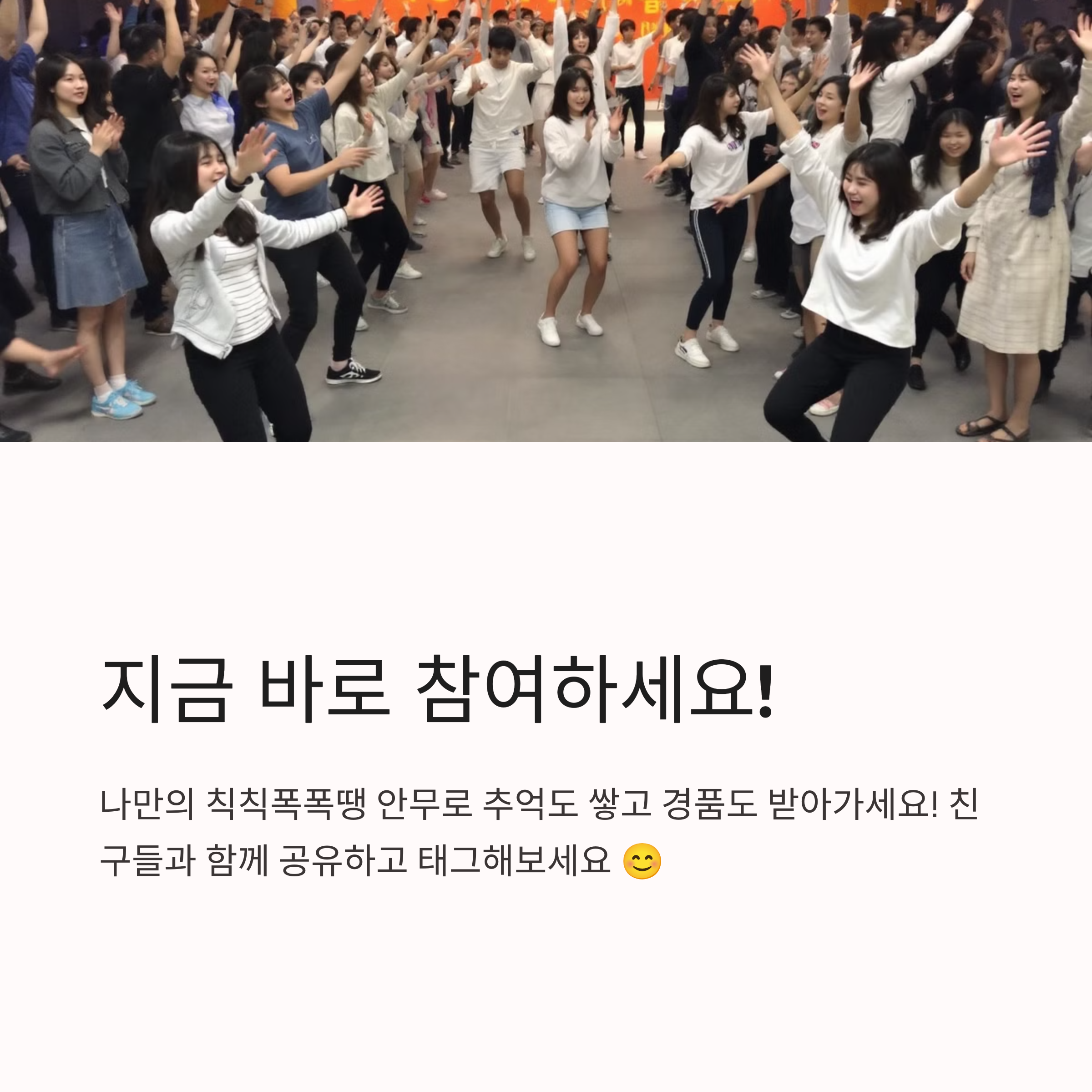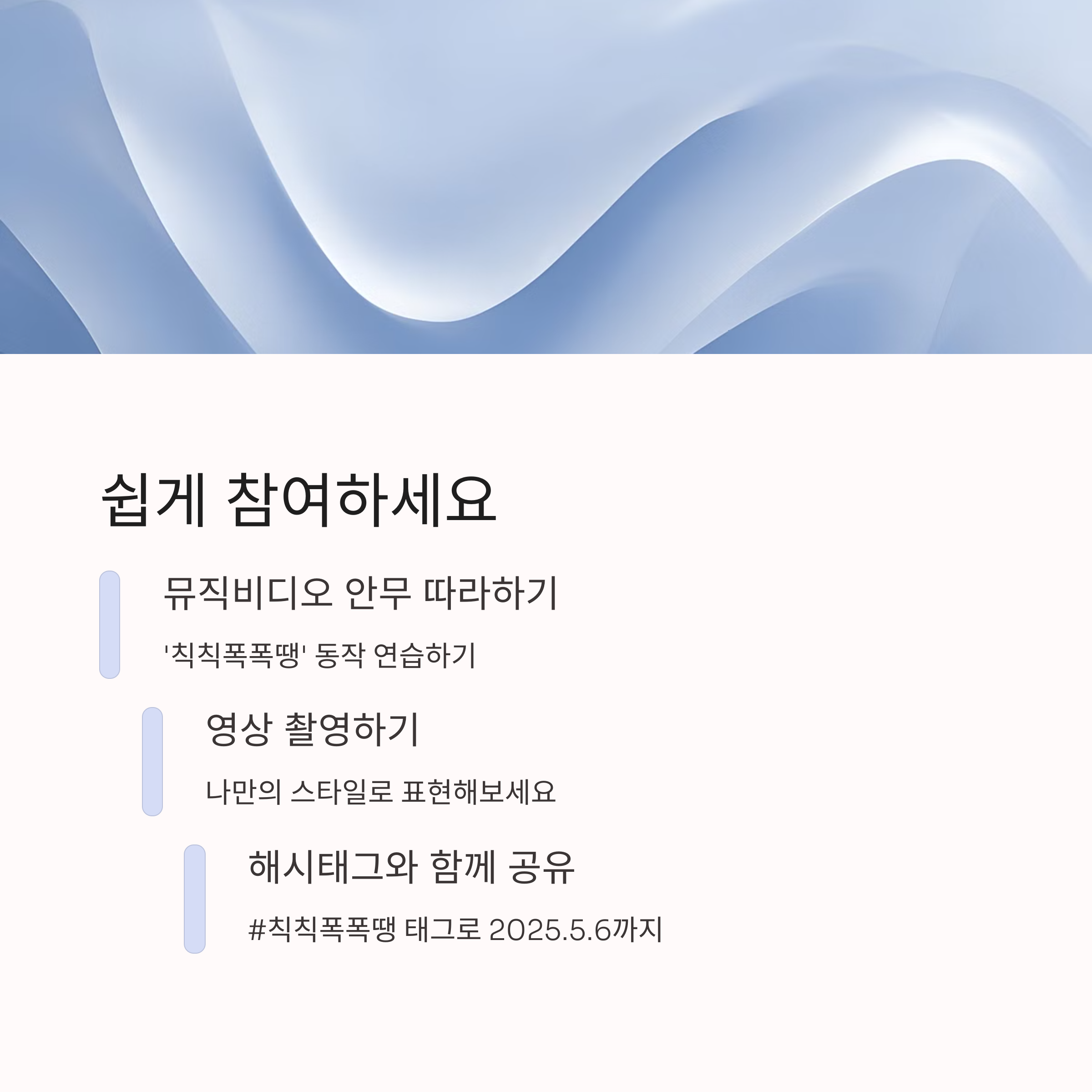 | 참여 방법 | ‘칙칙폭폭땡’ 노래에 맞춰 자유롭게 댄스 영상 업로드 |