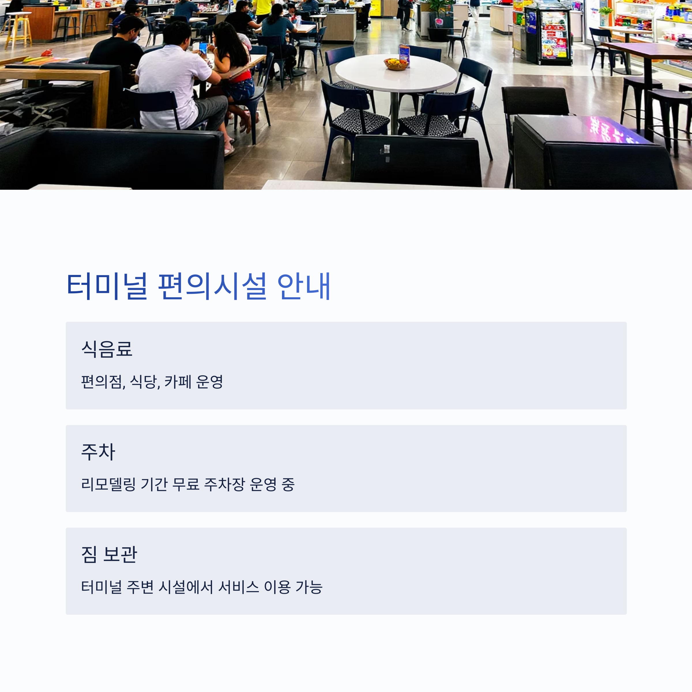 짐 보관 서비스는 별도 정보가 없지만, 일반적으로 터미널 내 편의점이나 주변 슈퍼에서 간단한 보관이 가능합니다. 특히 포항 터미널 주변은 생활 인프라가 잘 갖춰져 있어, 근처 편의시설을 이용해 간단한 보관이나 물품 처리에 어려움이 없습니다. 여행 전 혹은 도착 후 시간을 유용하게 활용하려면 이런 주변 인프라를 파악하는 것이 중요합니다.