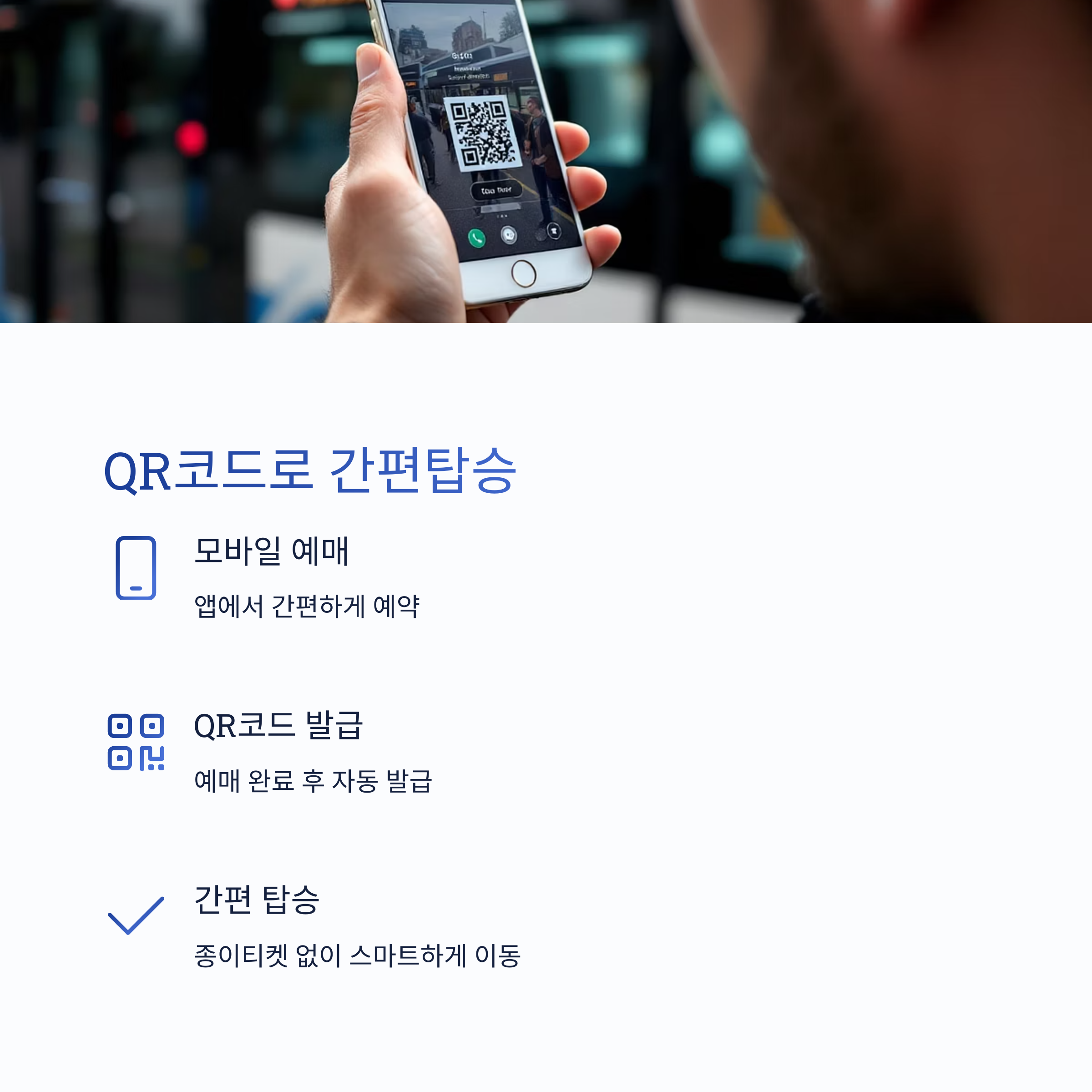 | 소요 시간 약 4시간 30분, 성수기 사전 예매 권장 | 잦은 운행으로 출퇴근 및 단기 여행에 적합 | 모바일 QR코드로 표 없이 간편 탑승 가능 |