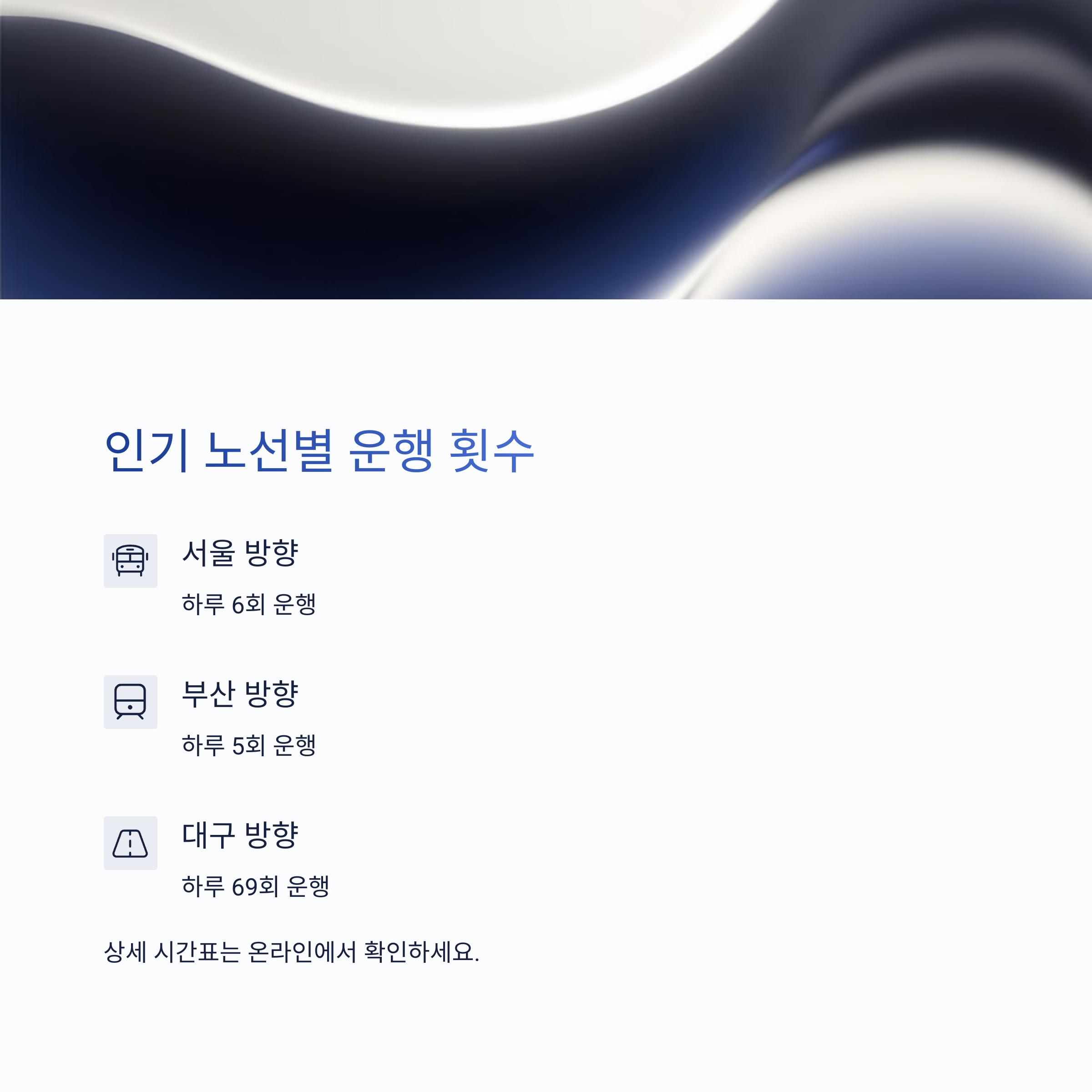 | 주요 노선 | 서울, 부산, 대구, 울산 등 주요 도시에 연결됨 |