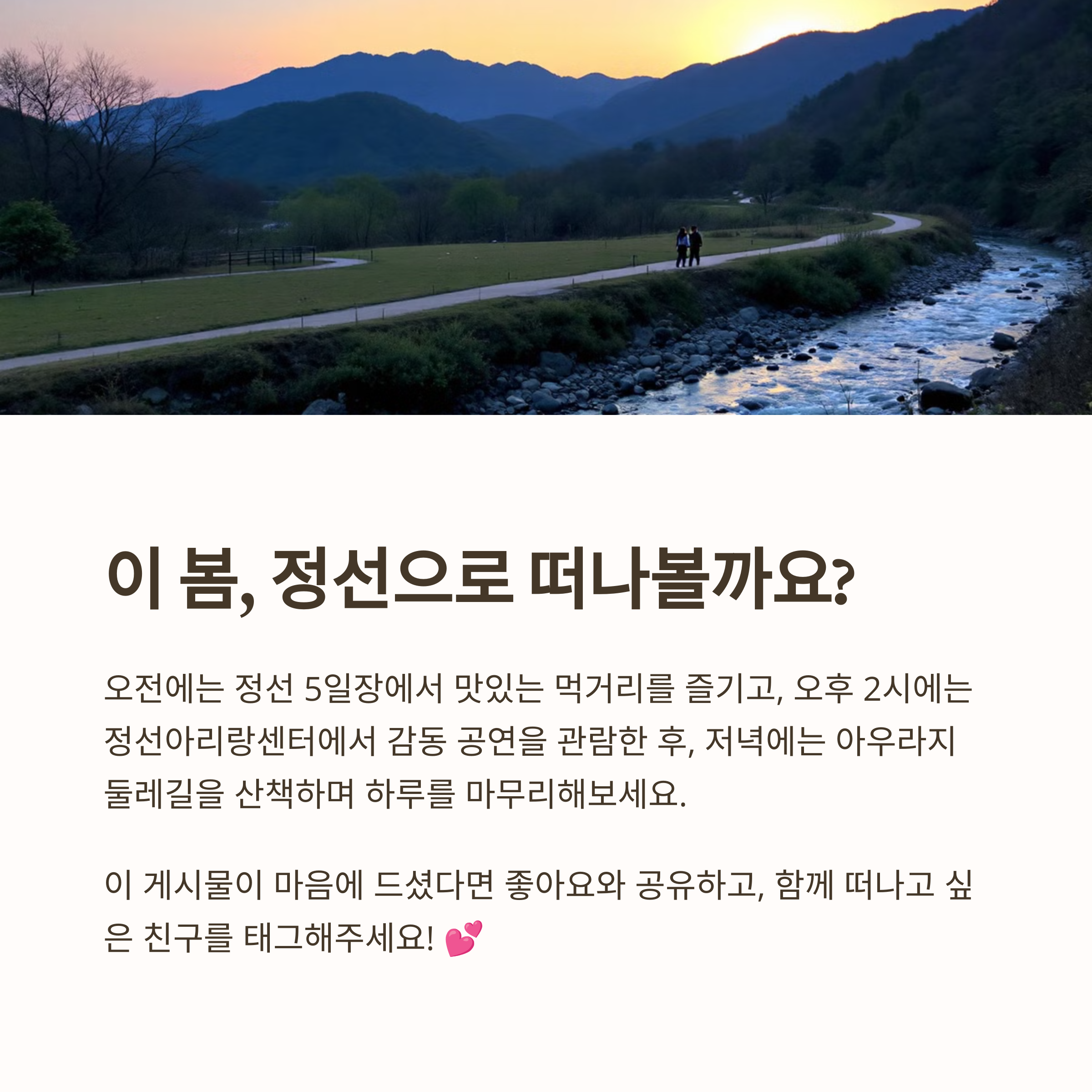 봄날의 정선을 여행하는 특별한 방법, 아리랑과 시장이 함께하는 힐링 코스